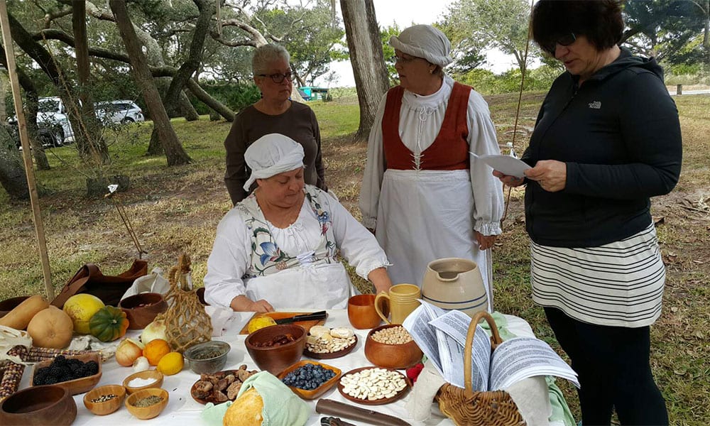 Re-enactors dressed as Spanish colonial women will describe the life of a typical woman in St. Augustine during Spanish colonial times and demonstrate how foods from three different cultures (Native American, African, and Spanish) combined to create a unique new cuisine in 1740s colonial Spanish Florida. The event will include a display of a Spanish soldier’s equipment pack, a discussion of the Fort’s role as protector of St. Augustine’s southern approach, and junior ranger activities.