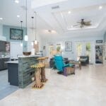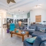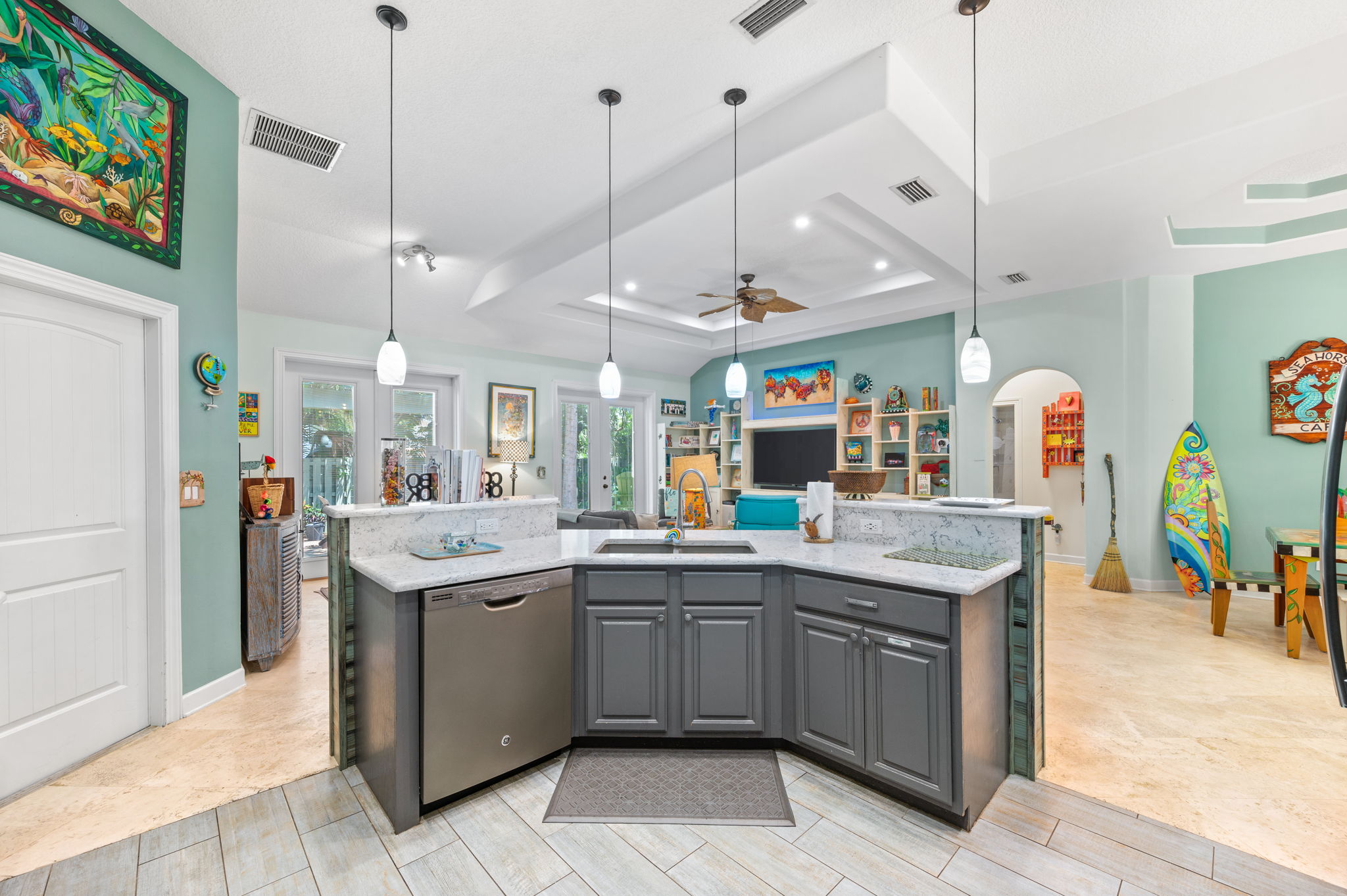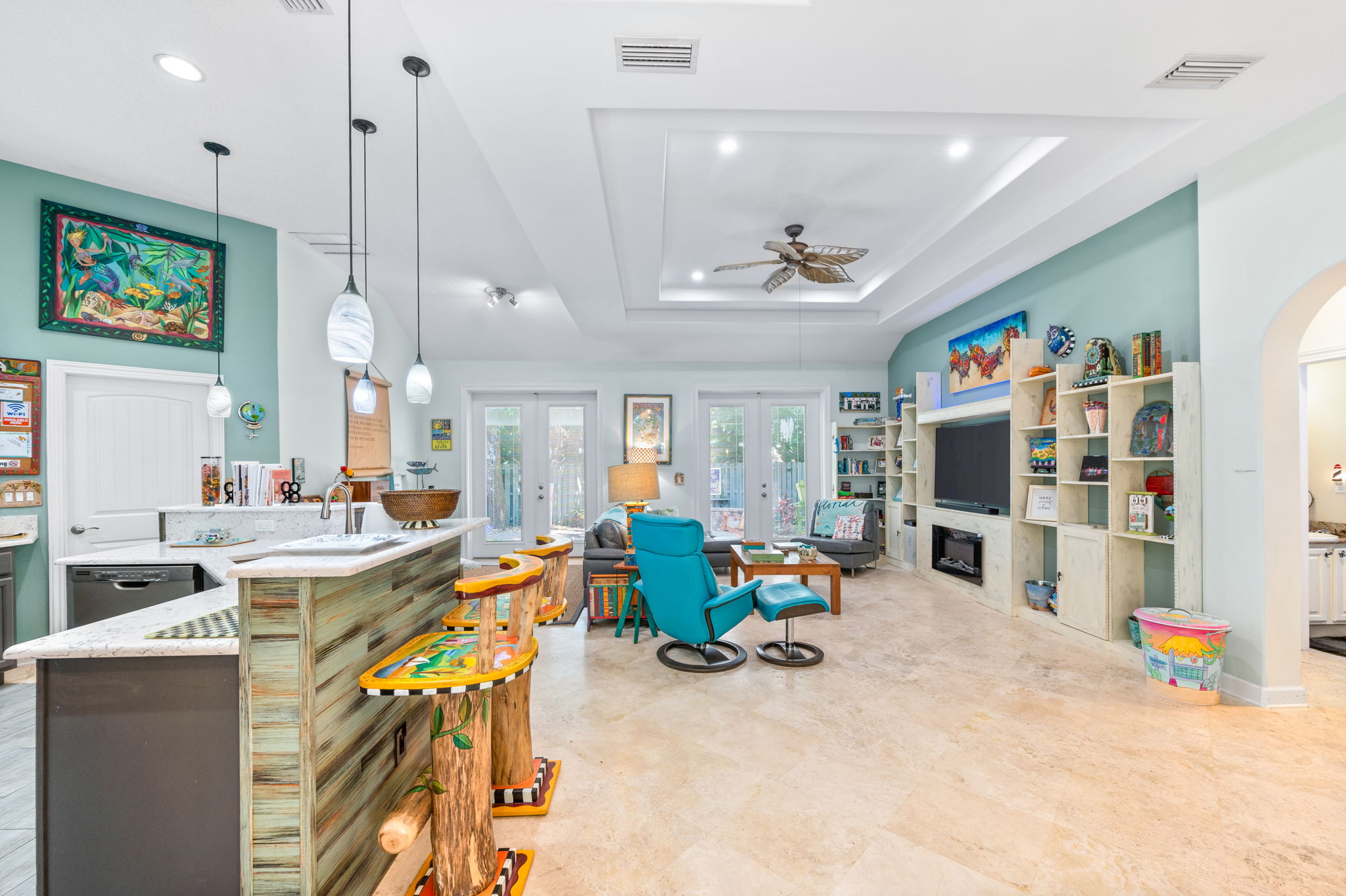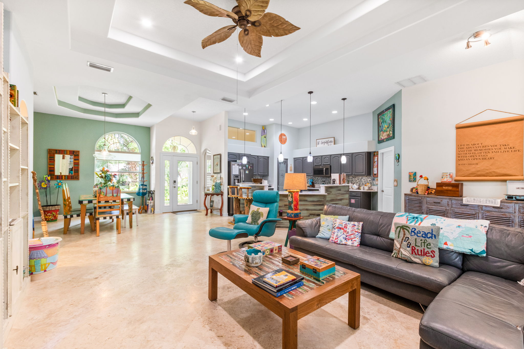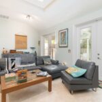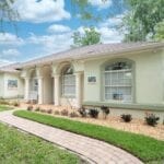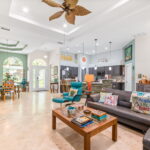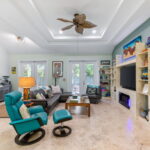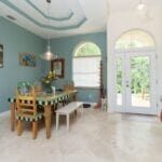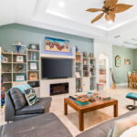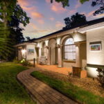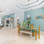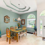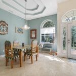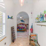 The house boasts high ceilings throughout, inset tray ceilings in living and dining areas, an open kitchen, travertine floors, rounded walls & archways, & is tucked away on a private shaded street corner lot with a side entry garage. Parking for two cars off-street is included too.