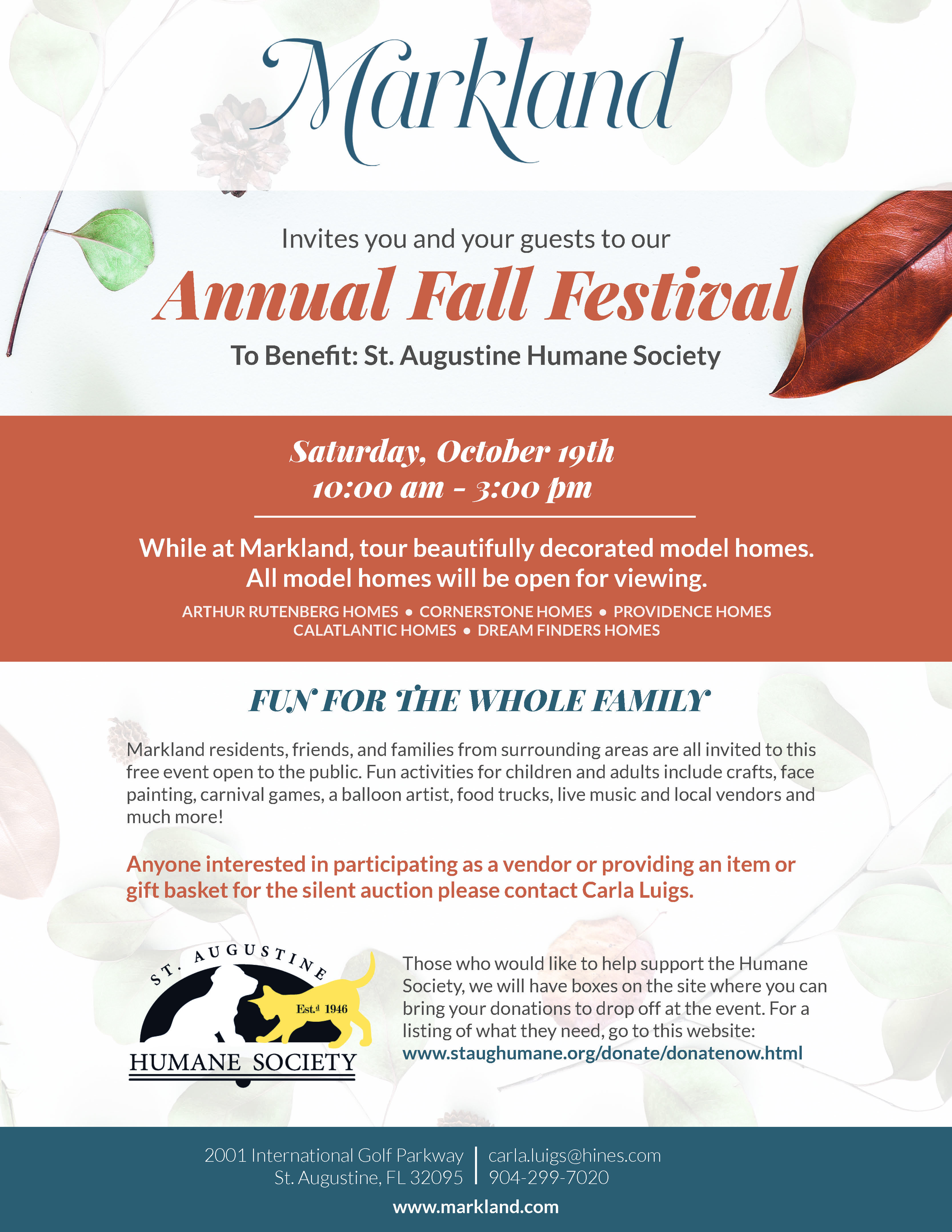 Annual Fall Festival at Markland to Benefit St. Augustine Humane Society