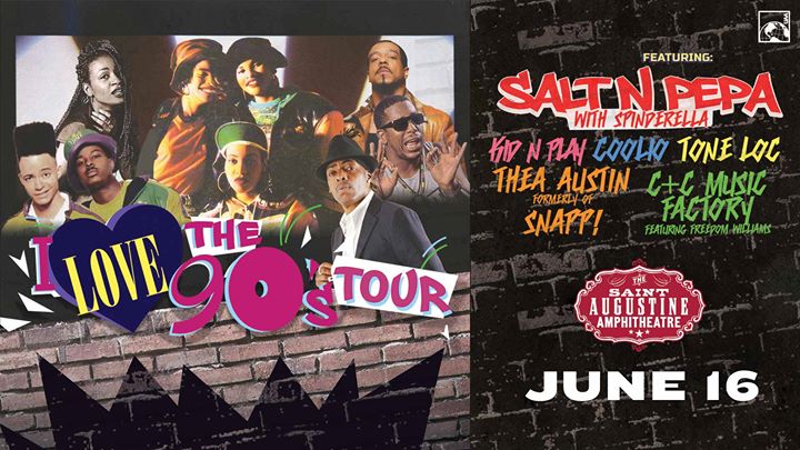 The massively popular I Love the 90’s Tour featuring hip hop legends Salt N Pepa with Spinderella, Kid ‘n Play, Coolio, Tone Loc, Thea Austin (formerly of SNAPP!) and C&C Music Factory featuring Freedom Williams returns to the Amphitheatre on Saturday, June 16, 2018.