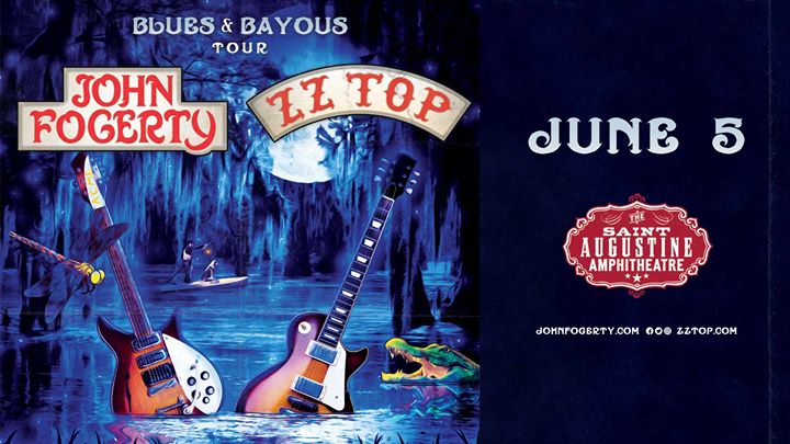 Rock icons John Fogerty and ZZ Top co-headline the “Blues and Bayous Tour” live at the St. Augustine Amphitheatre on Tuesday, June 5, 2018!