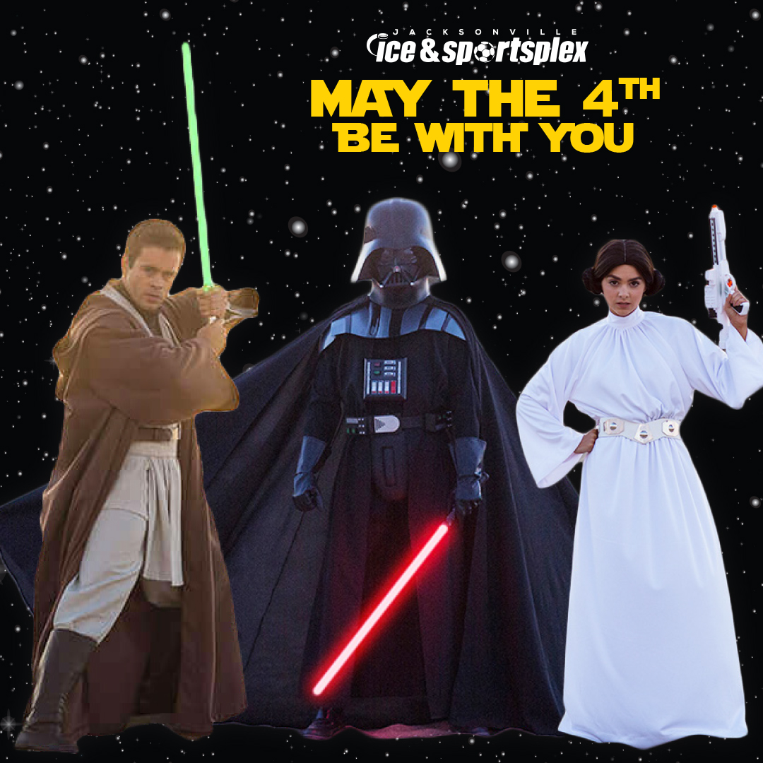 May the 4th be with you on the ice! Celebrate Star Wars Day at Jacksonville Ice and Sportsplex May 4th from 12 pm – 2 pm! Dress as your favorite character and learn to be a galactic warrior, while enjoying ice skating with the whole family. Admission includes: