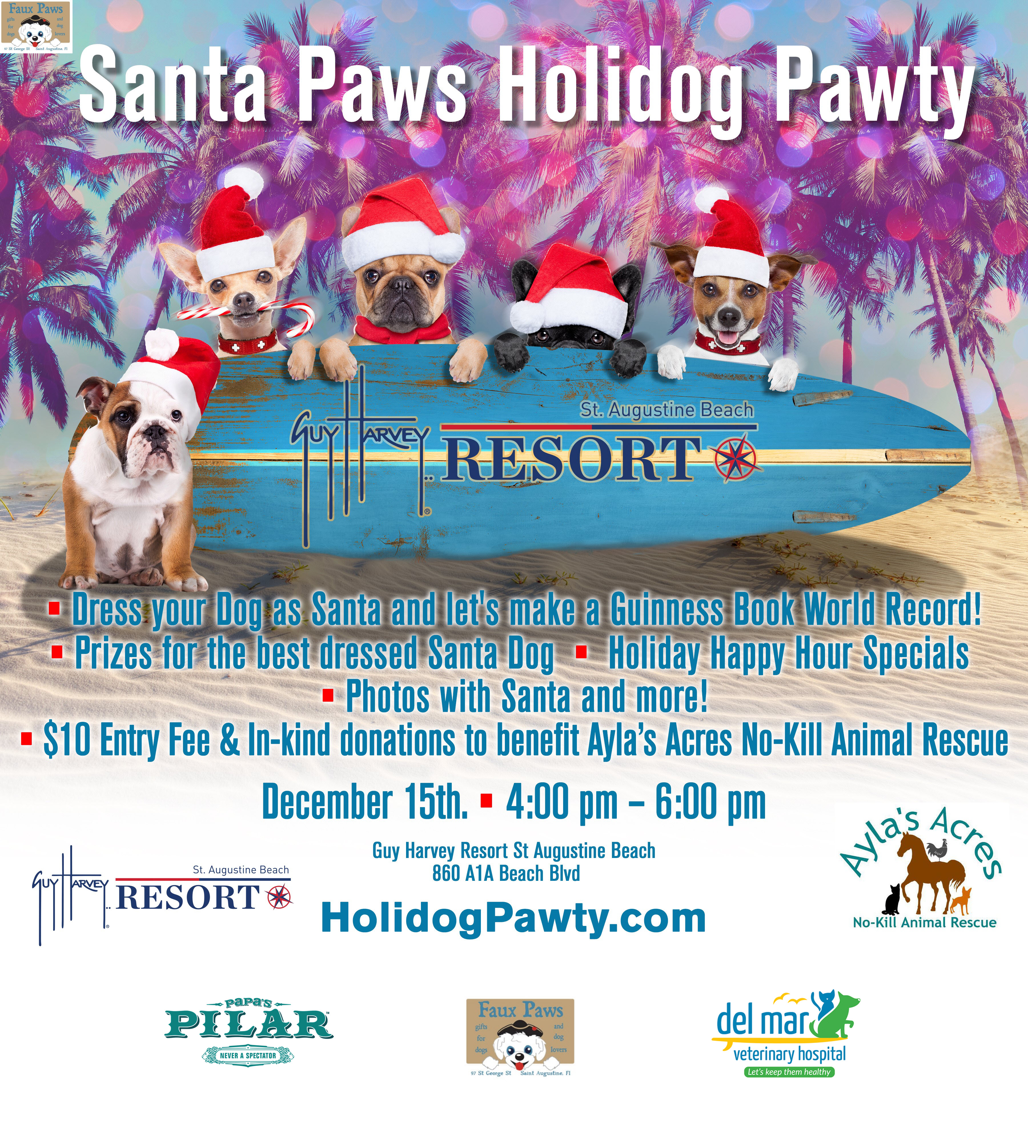 Casting call for all pups and party-animals! Come join us December 15th 4:00-6:00 pm, at the Guy Harvey Resort St. Augustine Beach as we try for a spot in the Guinness World Records for the most Santa Dogs at a single event. Dress your best friend in any kind of festive Santa costume and let’s show the world that St. Augustine is one of the most dog-friendly destinations!