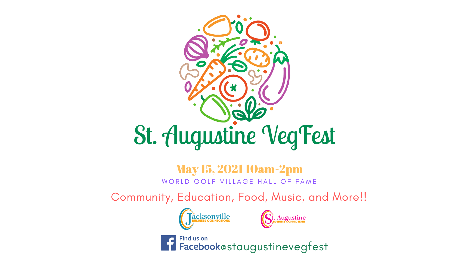 Join Jacksonville Business Connections with North Florida Veg Events, Inc, for the first St. Augustine VegFest on May 15th, 2021 from 10am-2pm at the World Golf Hall of Fame!