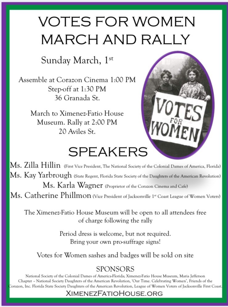 We will march to the Ximenez-Fatio House Museum (20 Aviles St.) for a Rally beginning at 2:00pm.