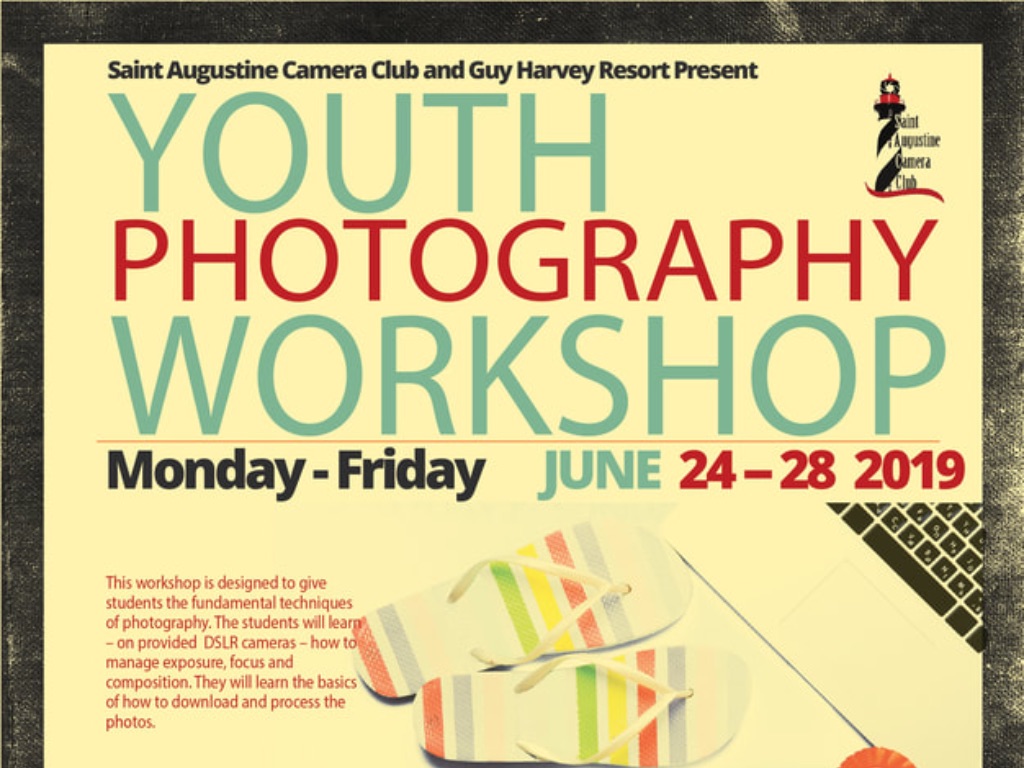 The Guy Harvey Oceanfront Resort has partnered with the St. Augustine Camera Club to host a Youth Photography Workshop Monday through Friday, June 24 through 28. For students ages 13 to 17, this workshop will introduce the fundamentals of digital photography, including exposure, focus, composition, downloading, and processing photos.
