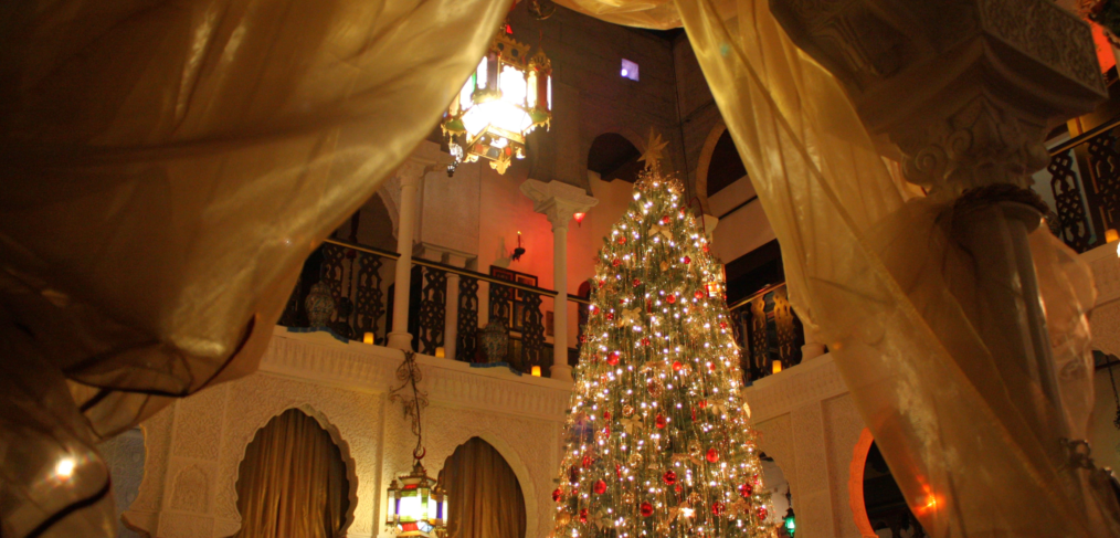 Join the Villa Zorayda Museum this Holiday Season for a special Christmas experience. Due to Covid19, we are unable to continue our annual “Candlelight Tours” this year, but visitors will still be able to tour the Museum and view our beautiful Christmas display in a unique way. The Villa is beautifully decorated for the Holidays with decorations throughout the Museum and a spectacular Christmas Tree, decorated in the colors of the Zorayda – red and gold – is located center stage in the Court of Lions. Victorian and traditional decorations are found in every room of the Museum for our visitors to enjoy. Over 100 candles are aglow throughout the Museum as you take a state of the art audio guided tour of this historic former home.