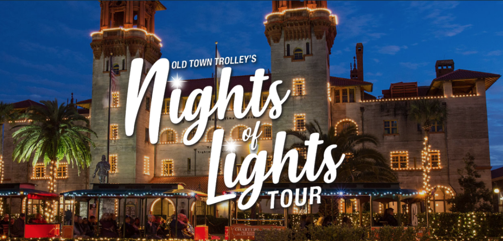 he holidays are popular for enjoying time-honored traditions like gift-giving, bonding with family, and decorating your home in the spirit of the season. Here in America’s Oldest City, we take the latter to a whole different level. Inspired by an ancient holiday practice brought here by the Spanish of displaying lit candles on window sills, The Annual Nights of Lights is set to brighten up the holidays in The Ancient City once again! To experience the glow of the season and the more than 3 million lights adorning every corner of the city’s historic district, take a ride on Old Town Trolley’s Nights of Lights Tour!